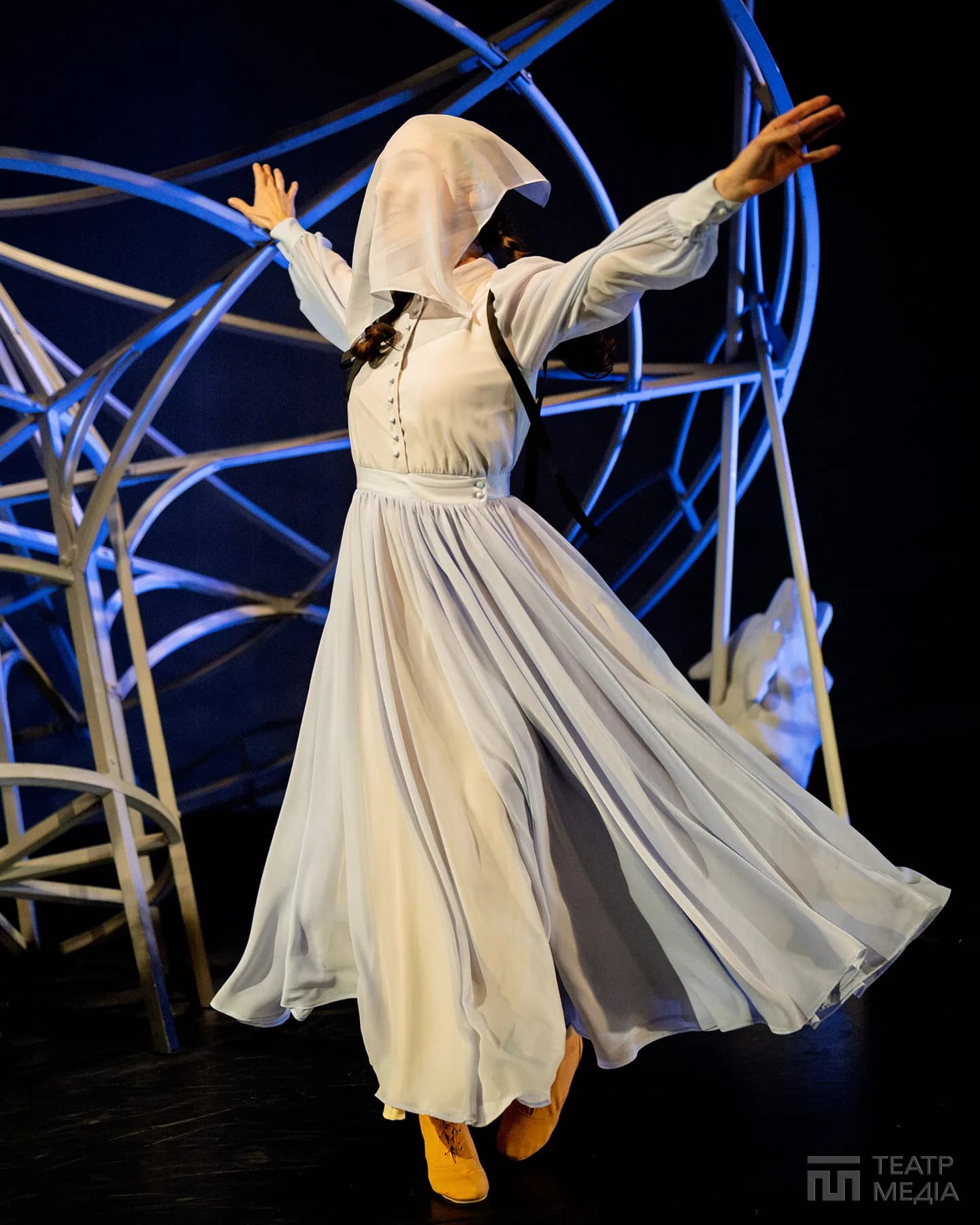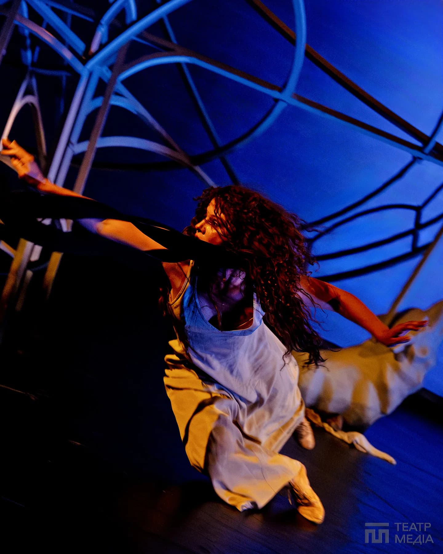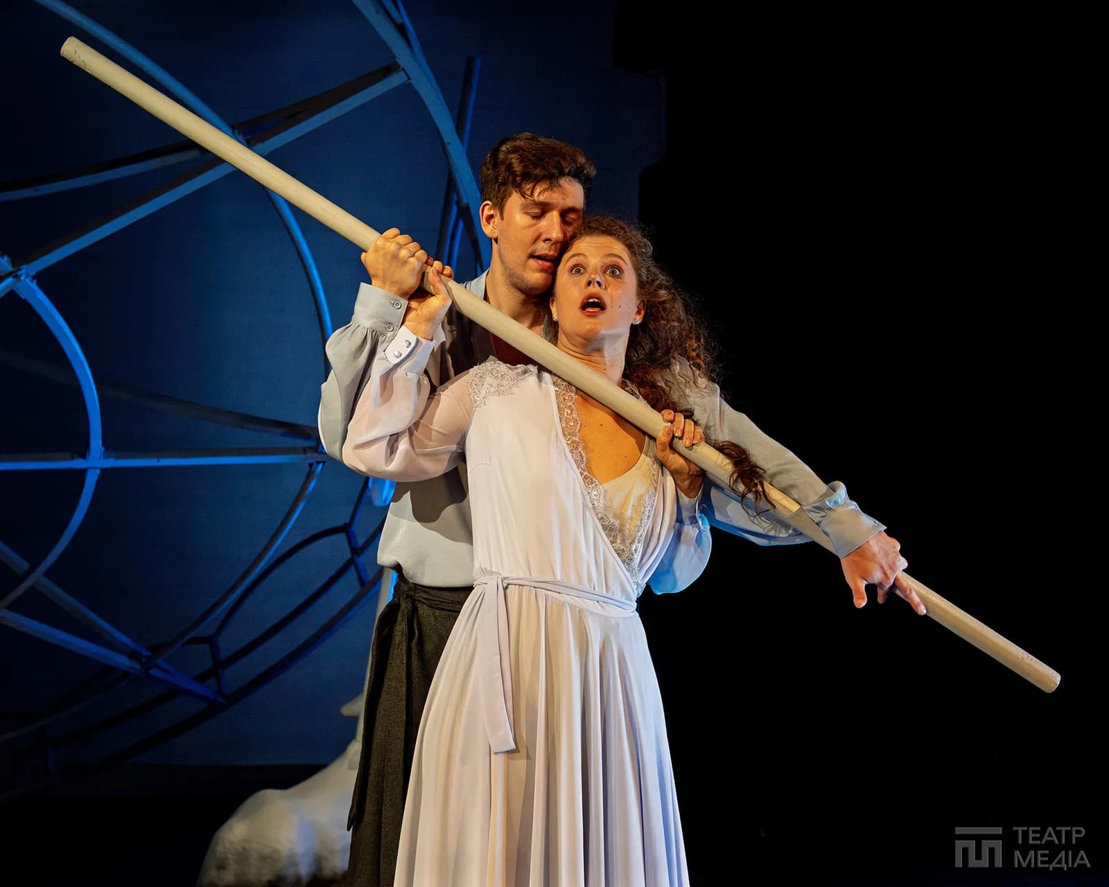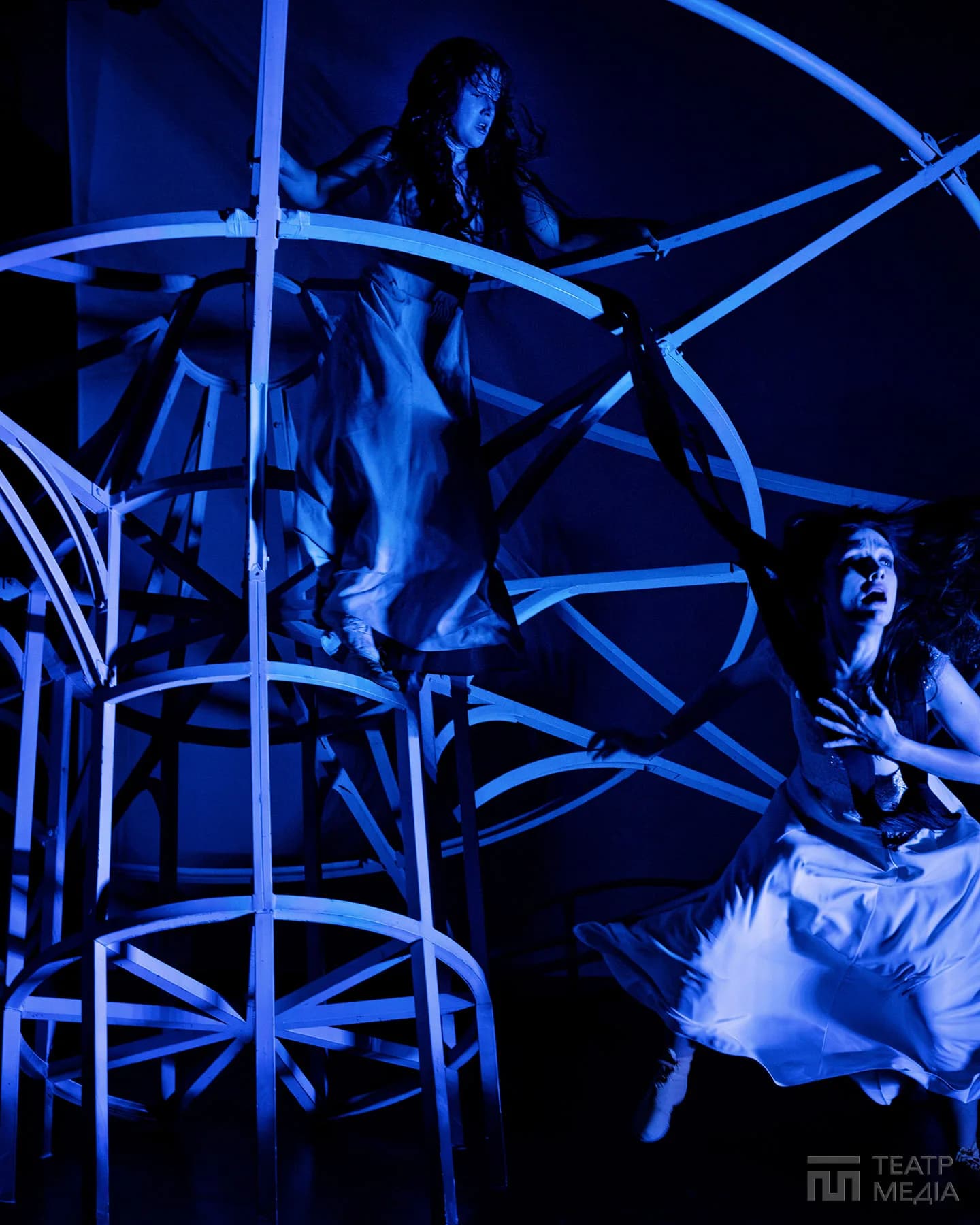 Театр Франка привчив нас до оригінальних сценічних рішень: екрани, пустелі Аризони, індустріальний арт-хаус. Цього разу значну частину простору сцени займає конструкція, схожа на похилену, зламану карусель. Статичну, металеву, холодну.