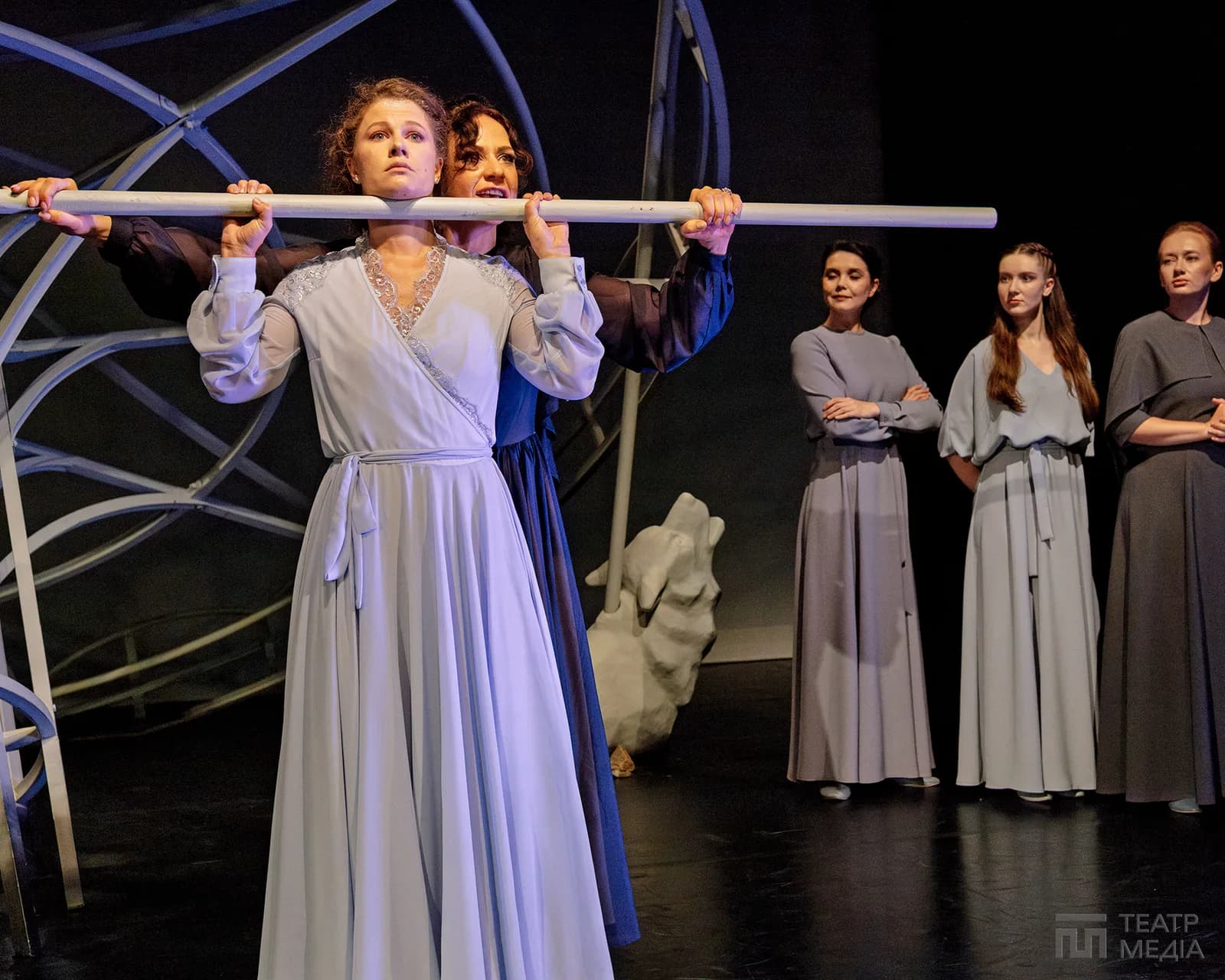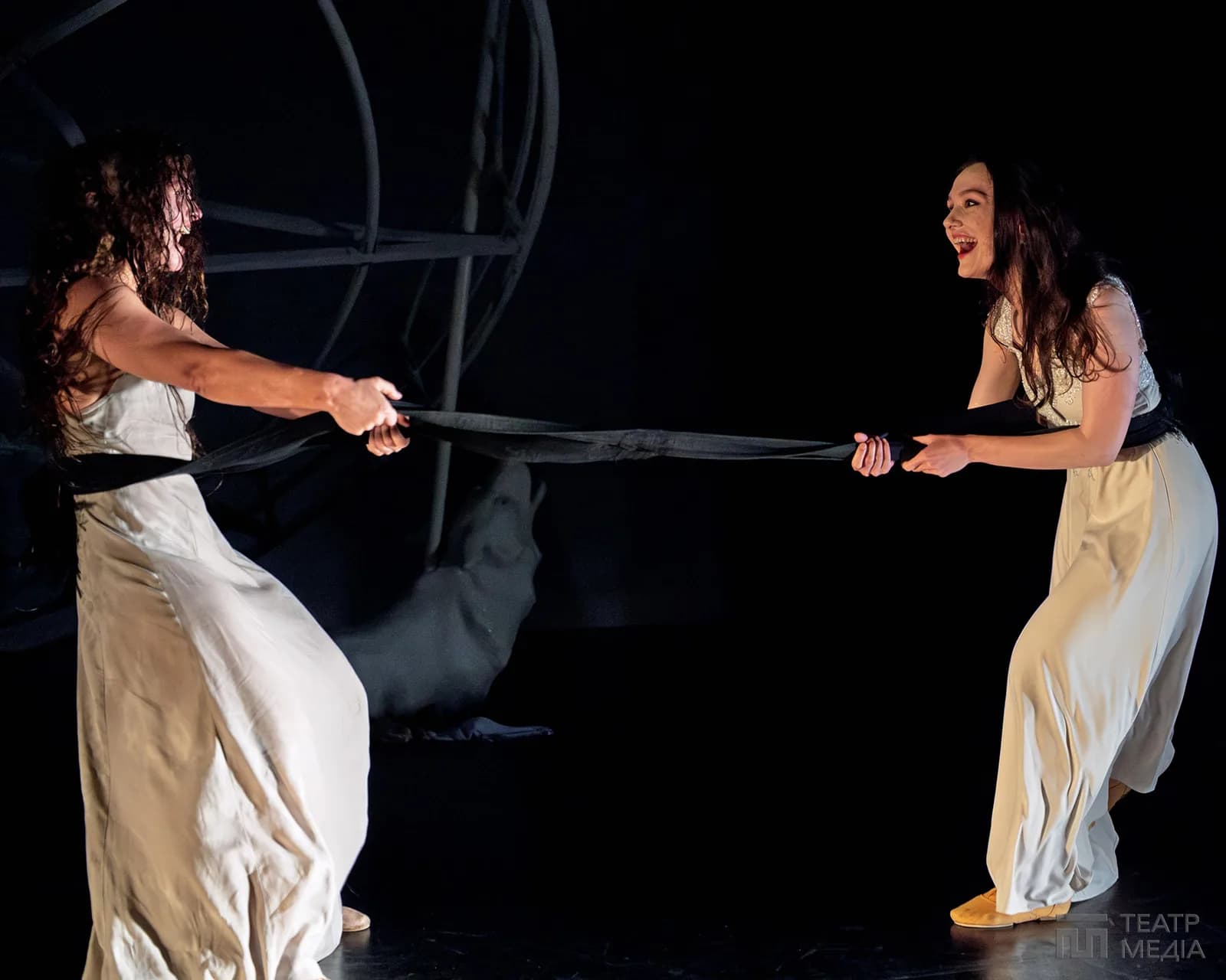 Дехто може побачити в ній купол храму, що впав з неба на землю. І не помилиться: одне з ключових питань, яке ставлять герої на сцені, — це пошук першопричини гріха братовбивства. Чому Каїн убив Авеля? А Ганна (Дар’я Легейда) у «Калиновій сопілці» пішла його слідами й так само вбила свою сестру — Олену (Аліна Підгорна)?