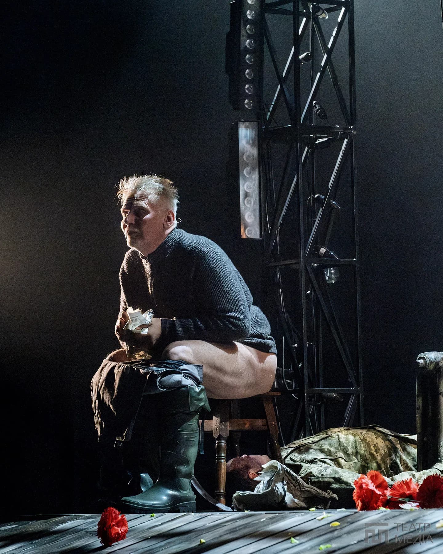 Всю виставу я бачу і відчуваю разом з нашим солдатом безмежну біль, постійну рефлексію, страх, відчай. Так виходить, що цей український військовий єдина справжня Людина на сцені, яка шукає можливість порозумітися з тим, що не розуміє і прийняти тих, хто не приймає його.