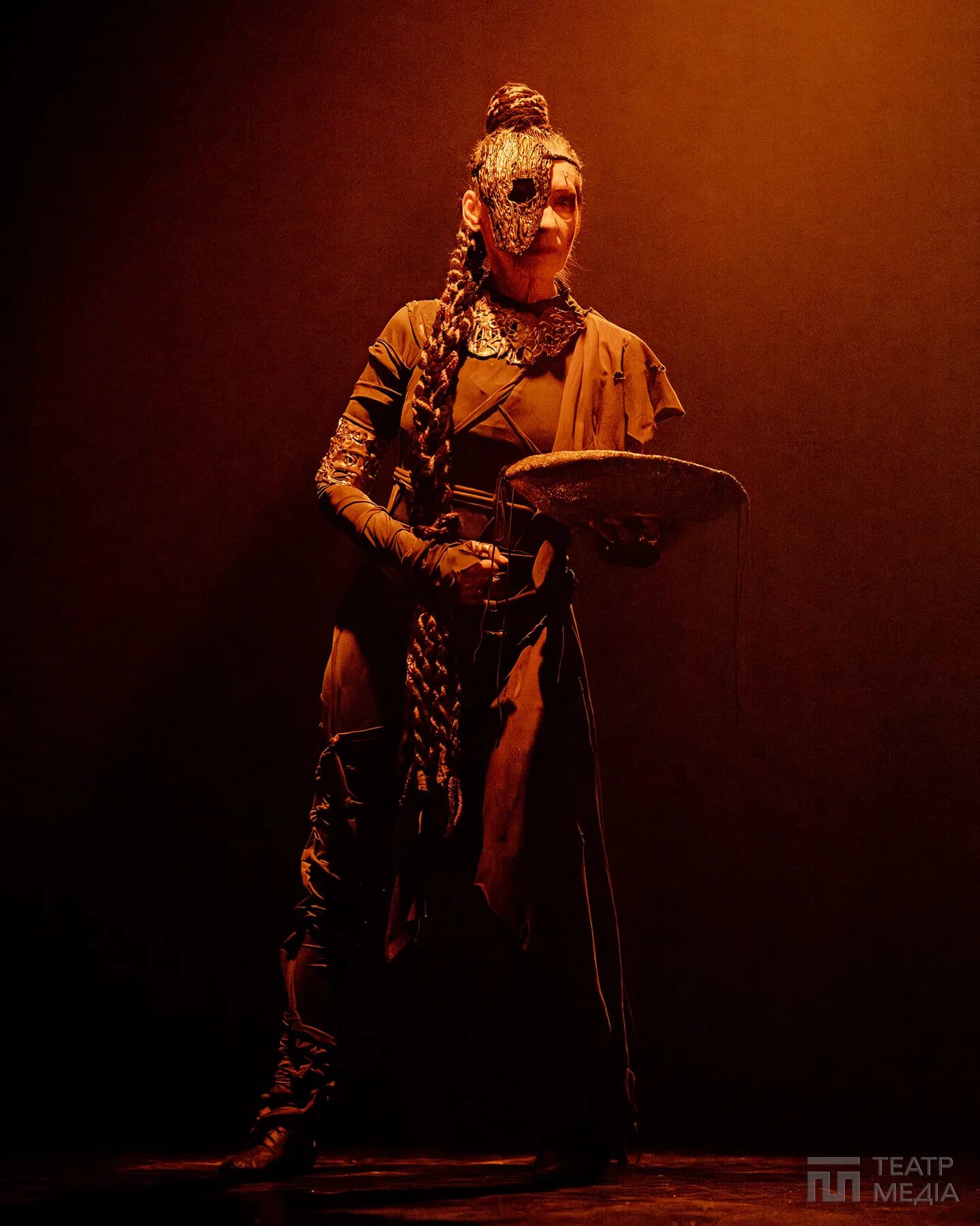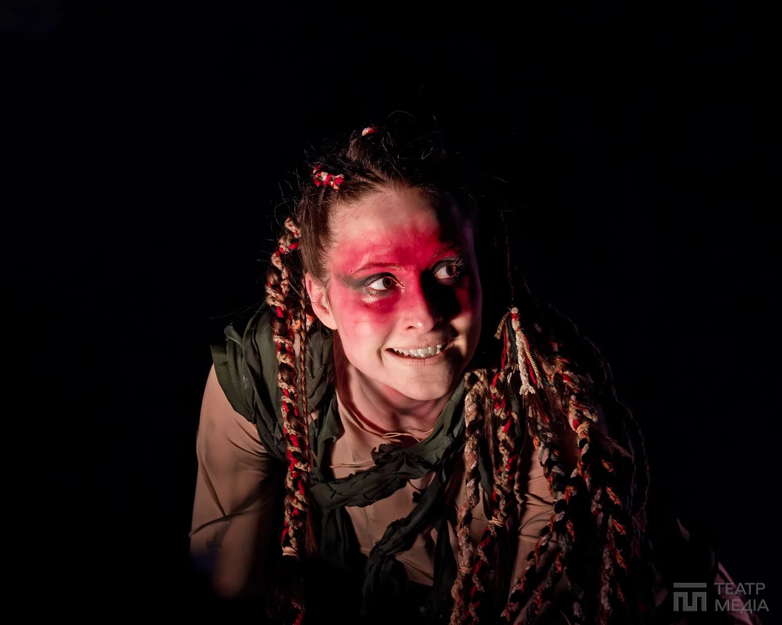 Сцена Амаги та шаманки Росави. Тут режисеркою знов застосований прийом пластичної асоціації. У напівтемряві на чорному помості ми бачимо…, о боже, гігантського павука! Чудовисько починає оживати та перевтілюватися на прекрасну жінку з ніби зкривавленим обличчям. Моторошний захват! Росава у виконанні Дарії Баріхашвілі – образ, що увібрав весь спектр жіночої підступності, відьмацтва, «чорного ока» та правдивих пророцтв!